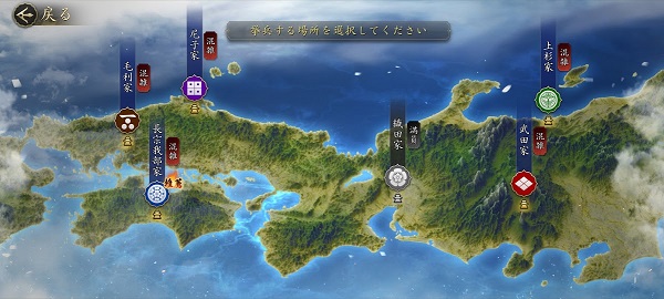 ゲームスタート時に何家として戦うかを決めます。勢力による追加効果によって、ポイ活難易度が変わる事はありませんので、どの勢力でもいいのですが、強い勢力に加わった方がポイ活クリアは容易です。それは、どんどん陣地が広がって占領できるエリアが広まる為です。自分の勢力が強い勢力である事を祈りましょう。