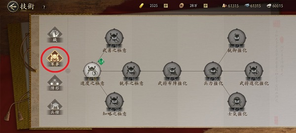 軍事では、部隊の武将数を上げたり、部隊全体の能力値を上げたりできるので必須といえます。軍事をメインで上げつつ、必要に応じて他の技術も習得していきましょう