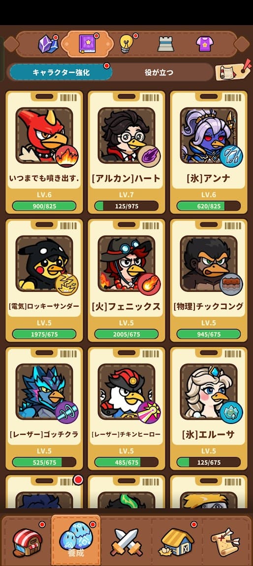 にわとりは鍛えれば強くなりますが、ダイアモンドやエッグコインを使います。ミッションをクリアする程度に強化すればOKです。たいして使いません